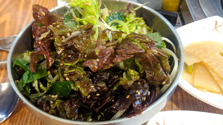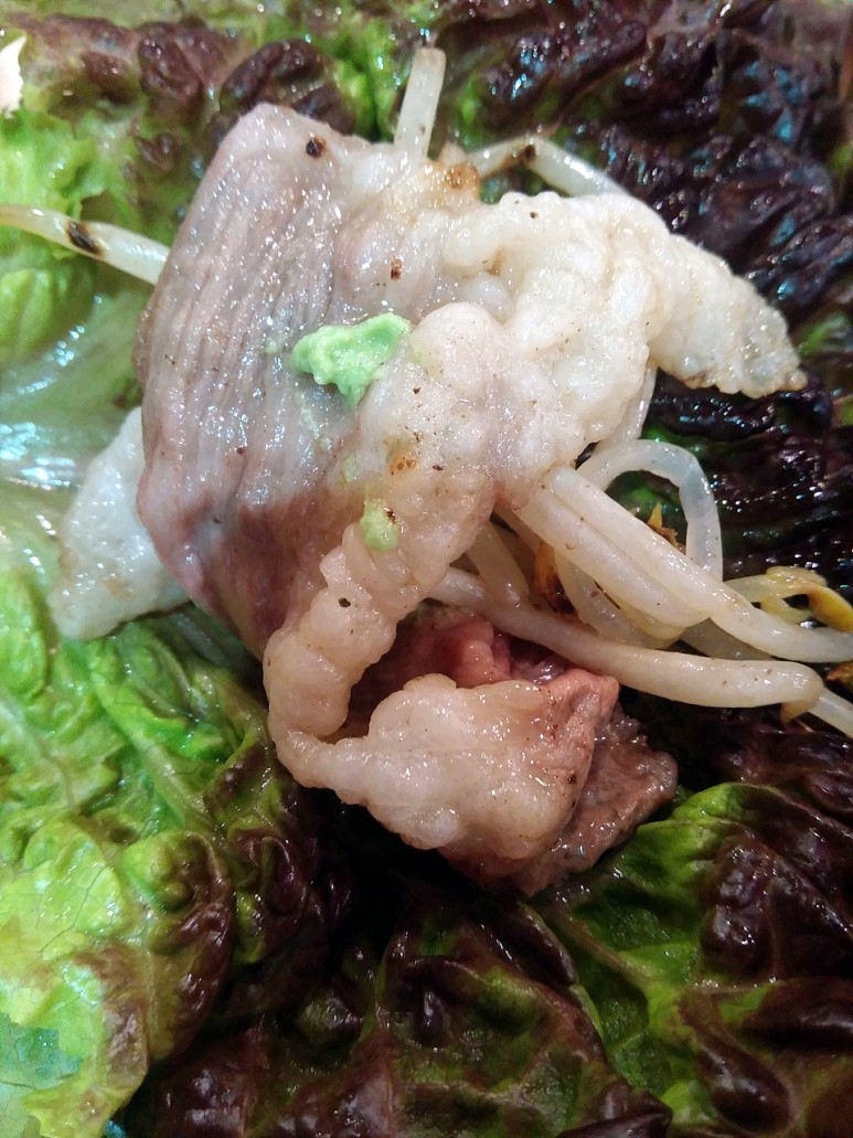 이곳은 숙주나물과 함께 먹도록 준비가 되어 있었는데 저는 맬젓을 부탁해서 양념 듬뿍 찍어서 먹었던 것 같습니다. (그러고 보니 앞 사진에 맬젓은 기본으로 나오는 게 아니라 별도로 달라고 해서 나온 것 같아요. 어제 일인데 어수선했었기 때문에 제 기억도 어수선합니다.)