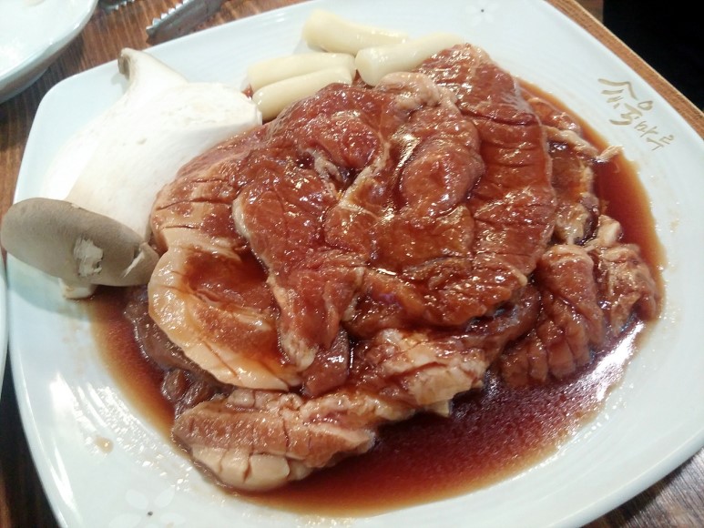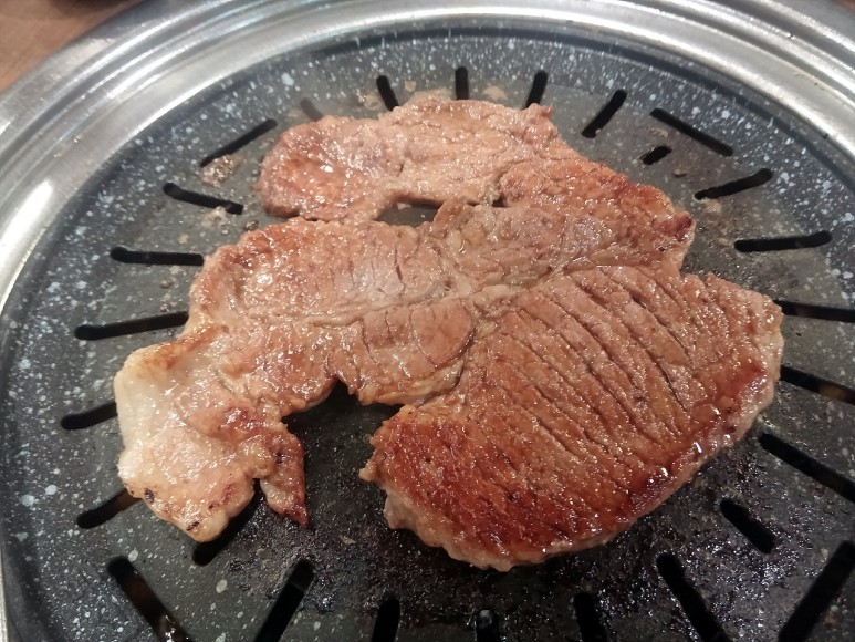 그래서 후식을 먹을까 고민하다가 어차피 금액 차이가 많이 나지 않을 것 같아서 아이들 좋아할 것 같은 양념고기인 양념목살 2인분을 추가했습니다. (양념목살이라고는 하지만 양념갈비가 이렇게 나오는 곳도 있으니 그냥 편하게 양념갈비라고 생각해 될 것 같은 메뉴였습니다. 맛도 양념갈비랑 같아요.)