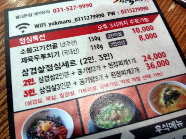지난주에 소개하고 이번 주에 바로 또 소개를 하게 되니 2탄 기분인데 메뉴는 아이들이 좋아할 만한 한우 세트메뉴와 양념목살을 주문해서 먹고 왔고요. 둘 다 좋아했습니다. 2가지 메뉴 중에서 더 좋아한 걸 고르라면 양념된 고기를 비싼 소고기 보다 더 좋아했던 것 같습니다.^^