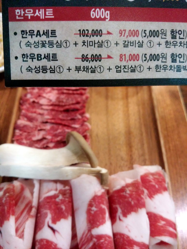 한우는 각 부위별로 판매를 하는데 어차피 섞어서 주문하게 되니깐 세트메뉴가 더 나은 선택인 것 같아요.
