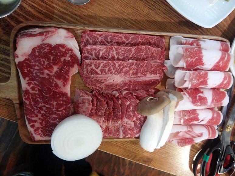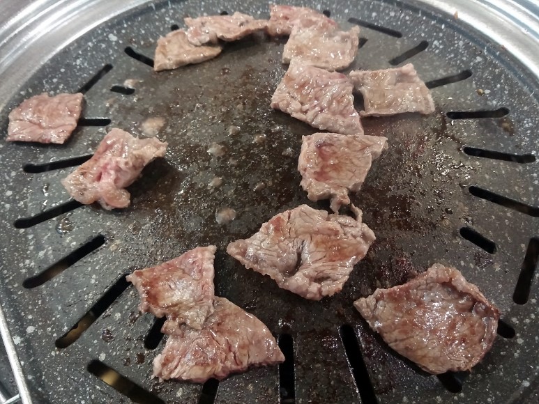 조명이 좋으니 훨씬 맛있어 보이는 게 역시 사진은 조명빨인가요? 이곳은 실제 고기가 이렇게 좋은 고기인데 카메라가 구려서 테이블이 상대적으로 어두운 곳에서 사진을 찍으면 비주얼이 실제만큼 안 나오는 것 같습니다.
