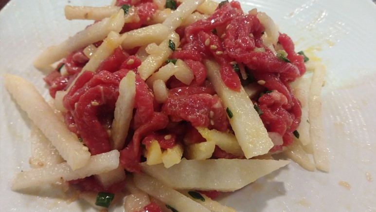 육회는 3가지 크기 중에 제일 작은 소자라 양이 많지는 않았고요. 저 말고는 별로 좋아하지 않기 때문에 거의 제가 다 먹었습니다. 이렇게 맛있는 걸 왜 좋아하지 않는지 이해가 안 가는 1인이에요.^^